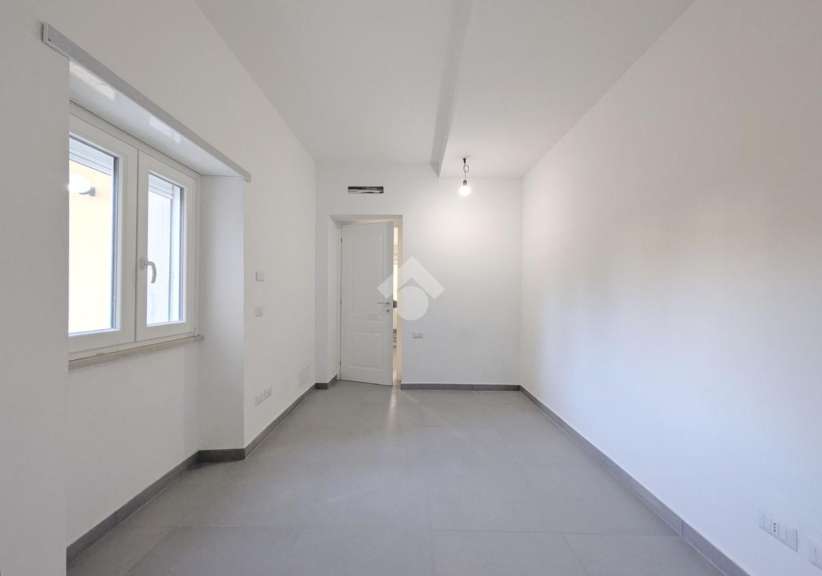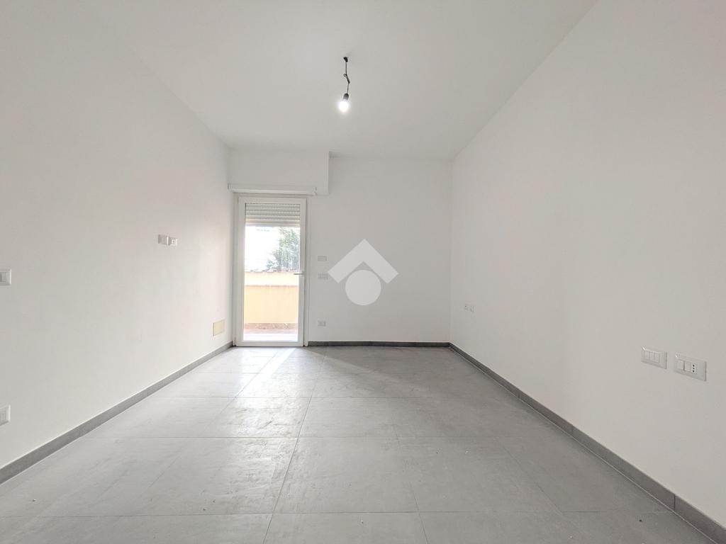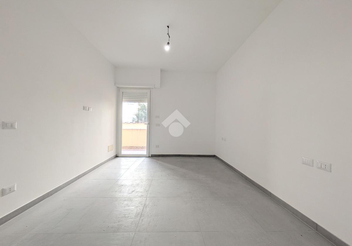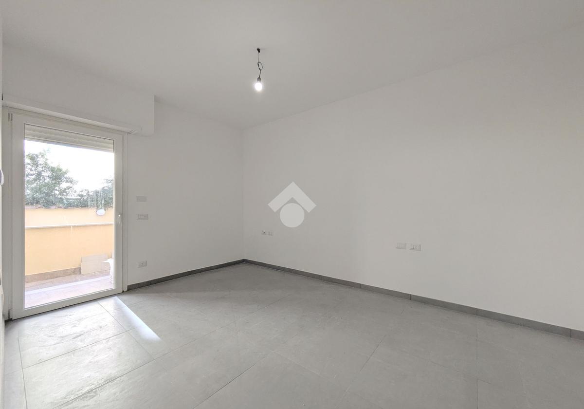 Viale di Marino - A pochi passi da Piazza della Pace, in zona centrale ottimamente servita, nel contesto di una palazzina di soli 6 appartamenti, proponiamo in vendita un appartamento al piano terra con ingresso semi-indipendente da corte esclusiva, composto da soggiorno con angolo cottura, due camere, bagno con doccia, disimpegno, loggia ed esternamente un ampio terrazzo. Completa la proprietà un posto auto con accesso da cancello carrabile. Riscaldamento autonomo a pavimento e predisposizione per condizionatori, porta blindata, infissi in PVC con doppi vetri e serrande elettriche. L'immobile è una costruzione del 2022 con le rifiniture interne appena terminate e libera subito.