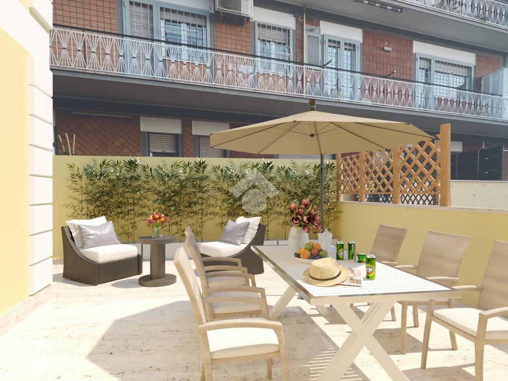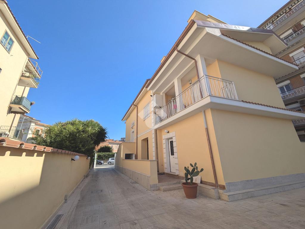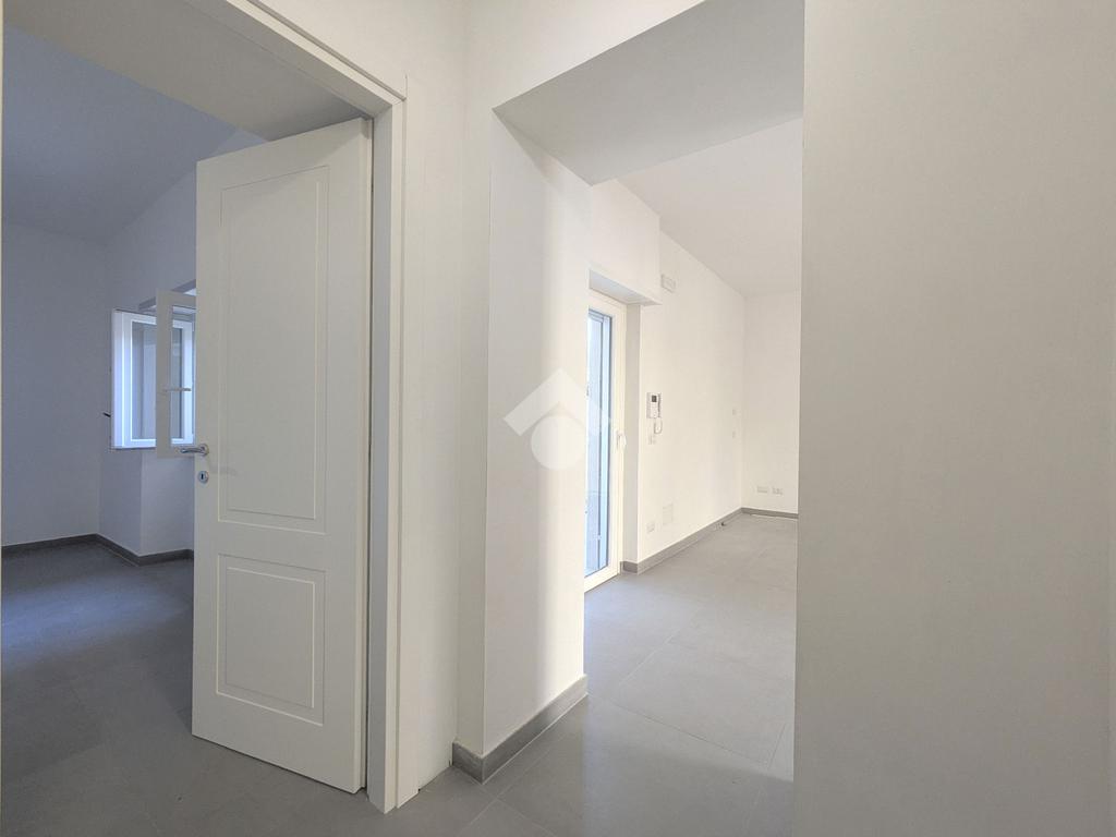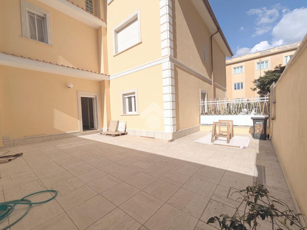 Viale di Marino - A pochi passi da Piazza della Pace, in zona centrale ottimamente servita, nel contesto di una palazzina di soli 6 appartamenti, proponiamo in vendita un appartamento al piano terra con ingresso semi-indipendente da corte esclusiva, composto da soggiorno con angolo cottura, due camere, bagno con doccia, disimpegno, loggia ed esternamente un ampio terrazzo. Completa la proprietà un posto auto con accesso da cancello carrabile. Riscaldamento autonomo a pavimento e predisposizione per condizionatori, porta blindata, infissi in PVC con doppi vetri e serrande elettriche. L'immobile è una costruzione del 2022 con le rifiniture interne appena terminate e libera subito.