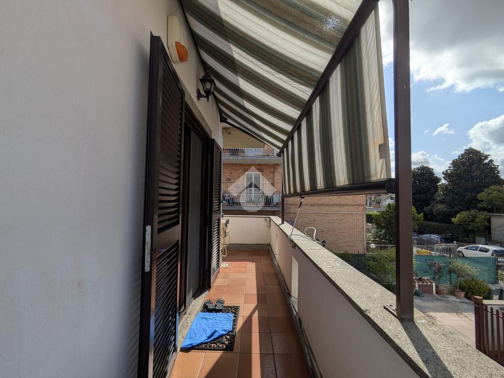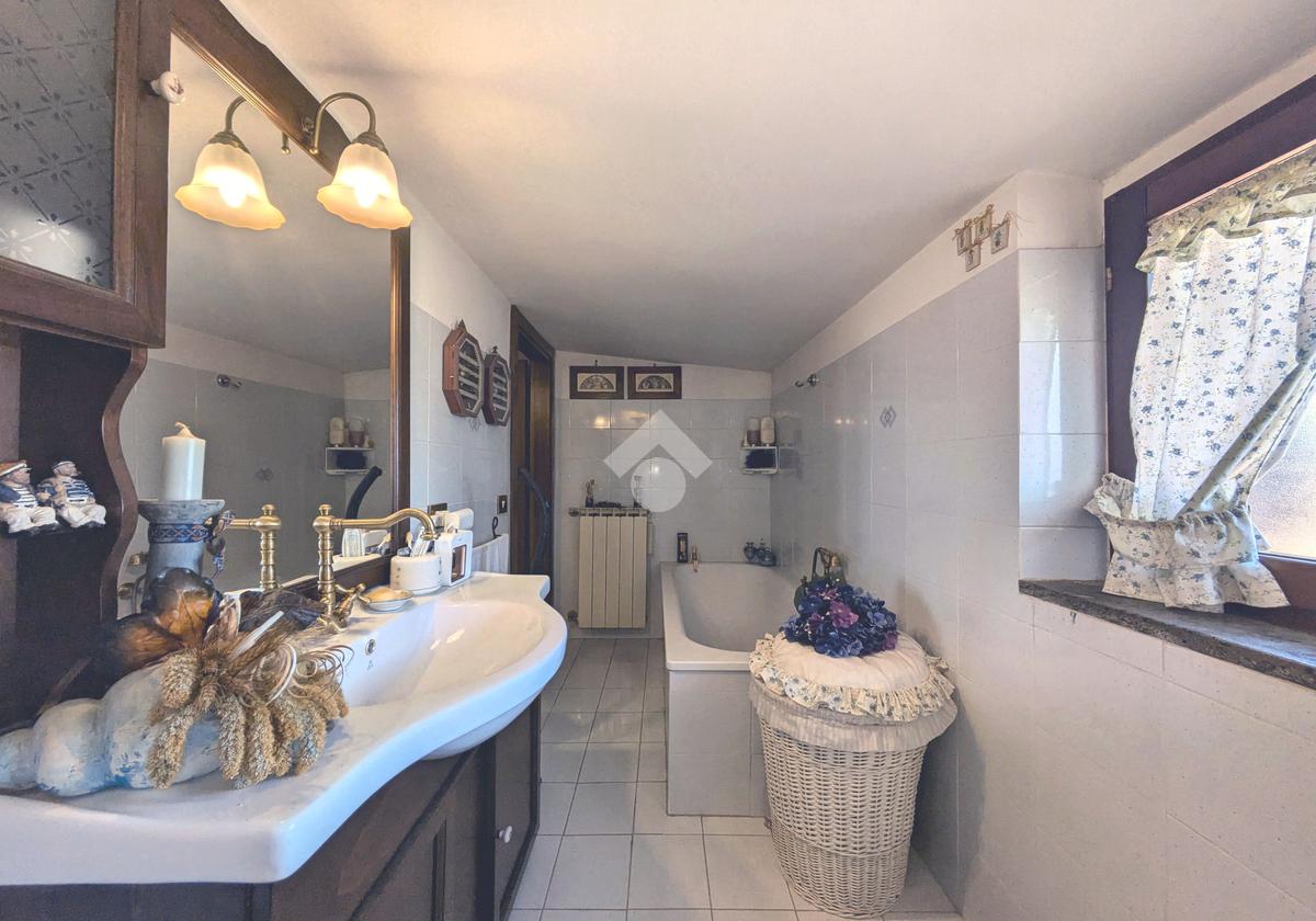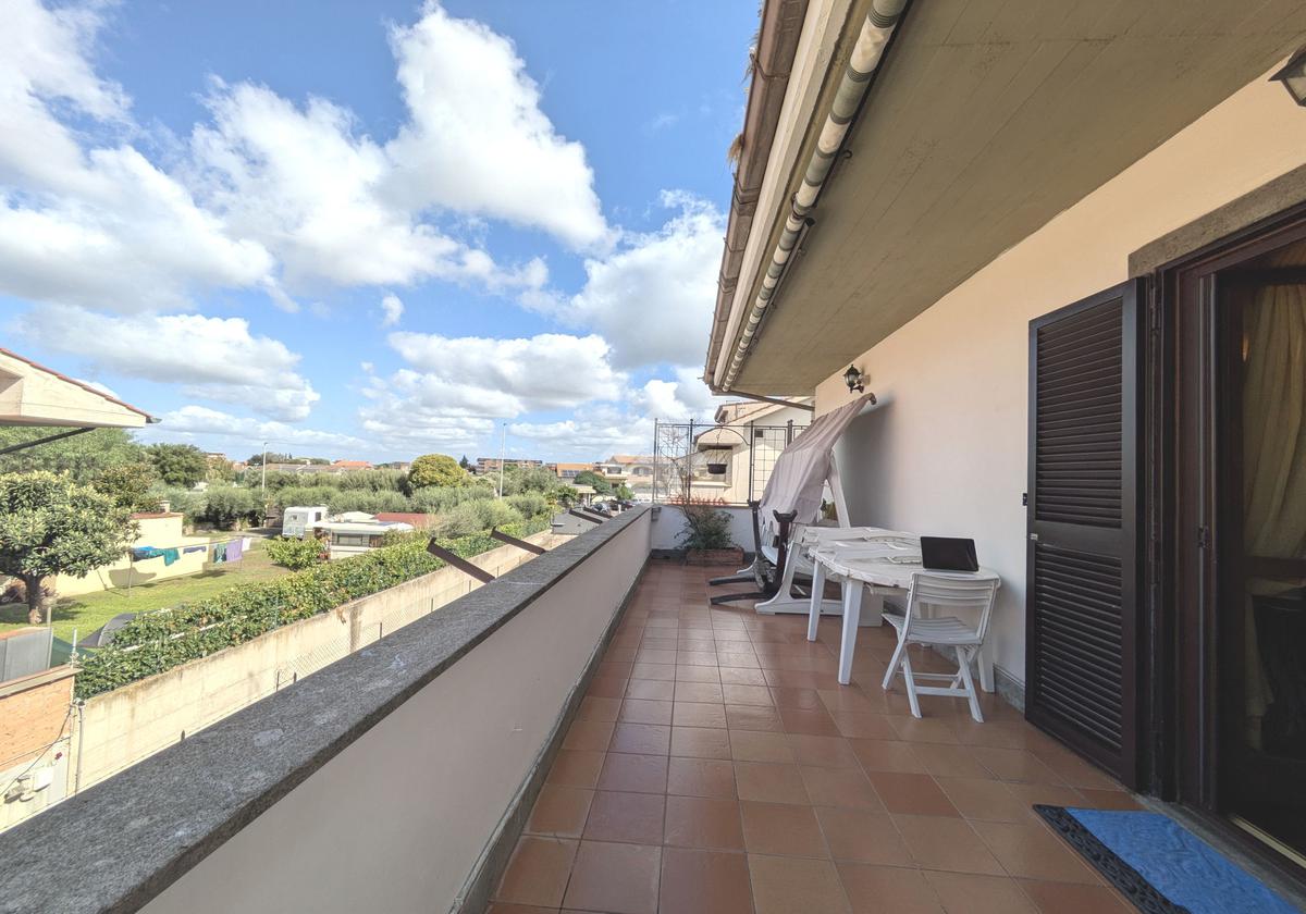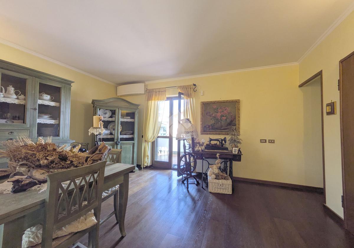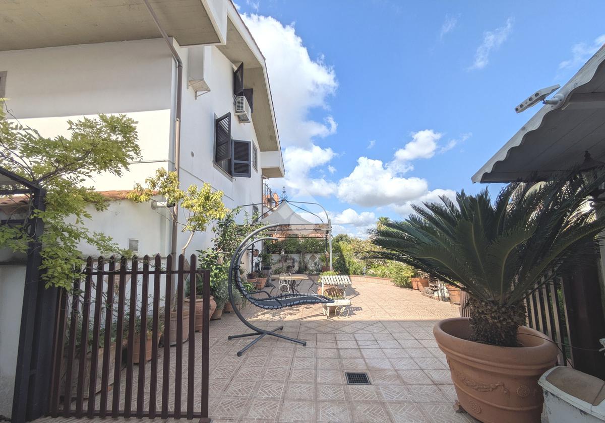 L'accesso alla proprietà avviene attraverso un parcheggio privato interno, comodo anche per due vetture grandi, da cui dopo aver parcheggiato possiamo entrare all'interno nel giardino. Il giardino che ci accoglie è principalmente mattonato ma con delle aiule verdi molto curate. Questo spazio è la vera perla della casa, uno spazio all'aperto dove trascorrere le belle giornate in compagnia degli amici e della famiglia, tra barbecue e tavolate. Per le giornate più fredde è stato creato un portico a vetri dove intrattenersi con un salottino di rappresentanza o eventualmente dove creare uno studio. E per gli amanti del bricolage è presente una casetta in legno dove poter riporre tutti gli attrezzi o dare libero sfogo alla creatività. Attraverso una scala in marmo saliamo al piano primo. Ad accoglierci è un salone molto luminoso grazie alla doppia esposizione. Il parquet, caldo ed elegante, fa da cornice a questo ambiente curato in ogni minimo dettaglio. Grazie alle due porte finestre, possiamo uscire sul terrazzo, perimetrale ed abitabile, dove poter mangiare all'aperto nella bella stagione. La cucina è un ambiente separato dove poter mangiare anche in 6 persone, arredato da una bellissima cucina in muratura dallo stile rustico, correlata di camino. La zona notte, che si trova al piano superiore dell'immobile, comprende una camera da letto con letto a baldacchino ed una cameretta. I due piani sono separati da una porta al fine di permettere il risparmio energetico e un miglior riscaldamento/raffrescamento dei singoli ambienti. I servizi, che si trovano sia al piano primo che al piano superiore, offrono praticità e comfort per la vita quotidiana e sono arredati di lavabi su misura: uno ha la vasca e l'altro ha la doccia. Il fabbricato di cui fa parte è stato costruito nel 1987, ma l'appartamento internamente è stato ristrutturato totalmente dall'attuale proprietario, che non ha risparmiato ne sulla qualità dei materiali ne sui dettagli. E' dotato di aria condizionata, persiane blindate, zanzariere, antifurto e tende da sole. La casa viene venduta con l'arredamento incluso di: cucina, bagni, armadi su misura, letto a baldacchino e casetta di legno in giardino.