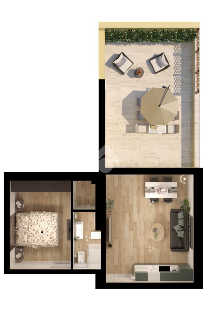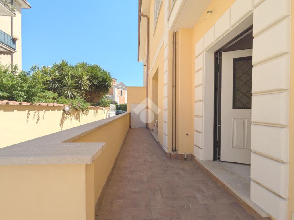 Viale di Marino - A pochi passi da Piazza della Pace, in zona centrale e ben servita, in palazzina di soli sei appartamenti senza condominio, proponiamo in vendita un appartamento al piano terra con ingresso semi-indipendente da corte privata di 10mq. circa. L'immobile è composto da soggiorno con angolo cottura, una camera da letto, un bagno finestrato con doccia, disimpegno, loggia di 4,36mq e ampio terrazzo di 31mq. circa. L’appartamento è dotato di riscaldamento a pavimento, predisposizione per condizionatori, porta blindata, infissi in PVC con doppi vetri e serrande elettriche. L'immobile è stato costruito nel 2022 e le finiture interne sono state completate nel 2025. Disponibile da subito.