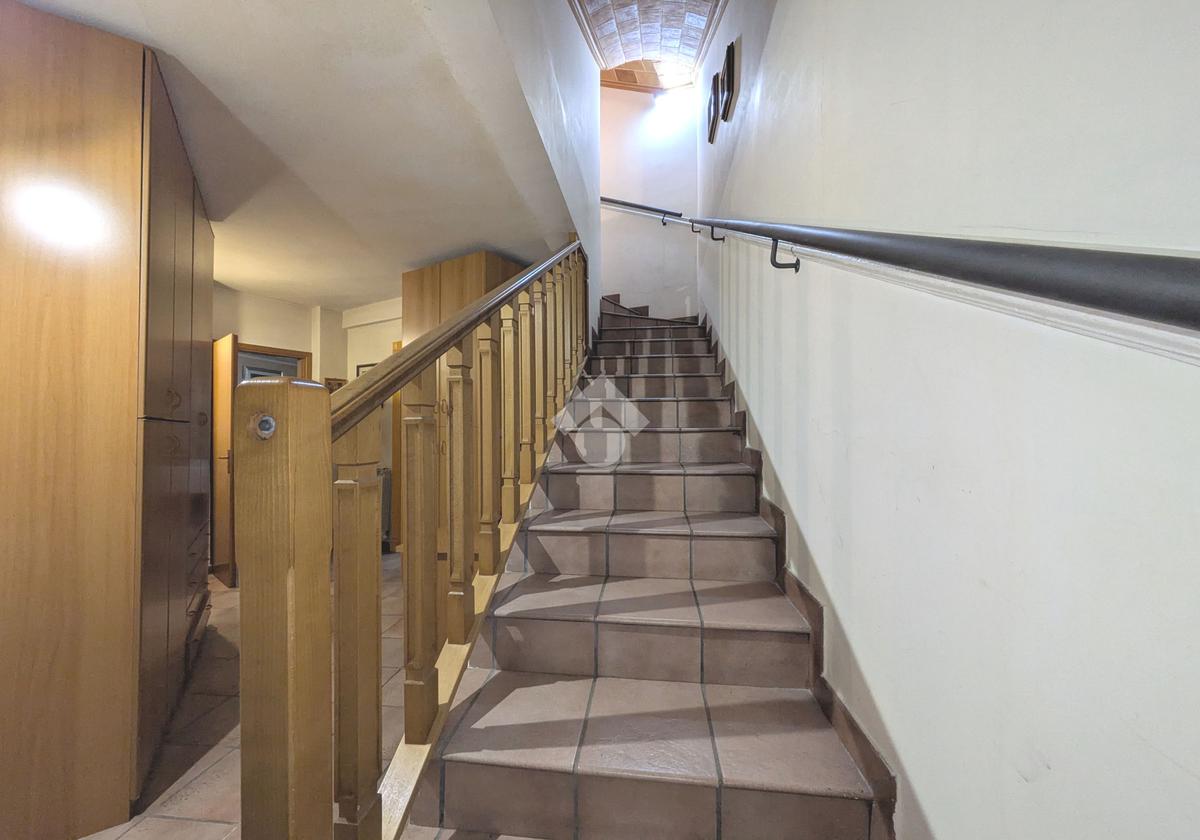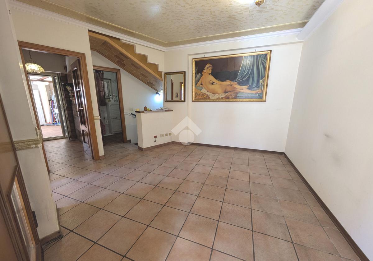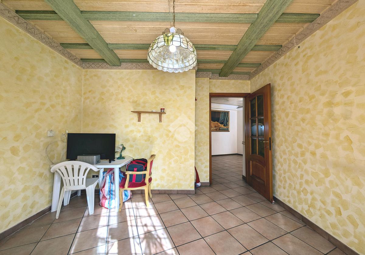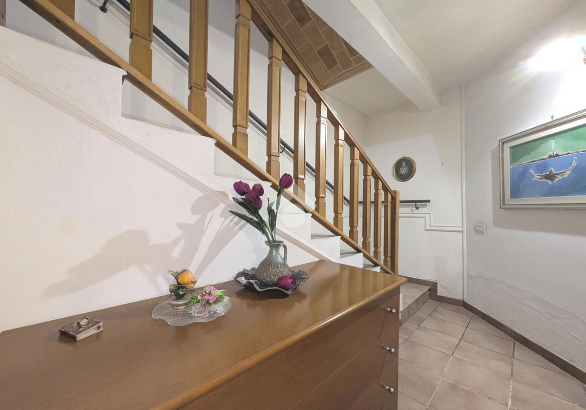Si accede attraverso un cancello automatico che consente l'entrata sia pedonale che carrabile per più veicoli all'interno del giardino di proprietà. Questa area, prettamente pavimentata, è un ampio giardino di 180 mq, molto soleggiato perché gode di un ottima esposizione (sud- est); da qui si entra all'interno dell'appartamento dove ci accoglie un primo salottino, una camera da letto, un bagno ed un cucinotto. Attraverso una scala in muratura, si accede al piano seminterrato di 80, la sala hobby: qui un comodo disimpegno ci introduce ad un grande soggiorno con angolo cottura, una camera da letto matrimoniale e un secondo bagno.