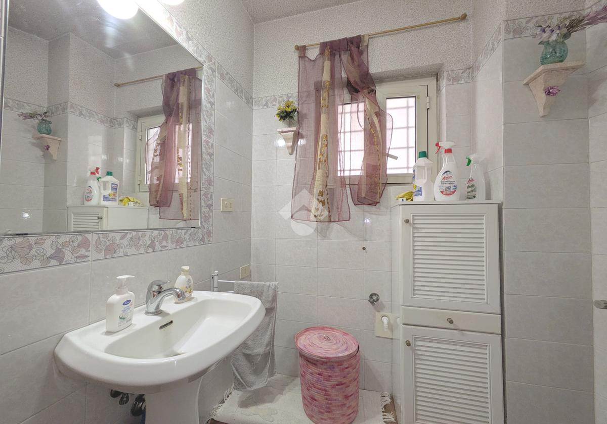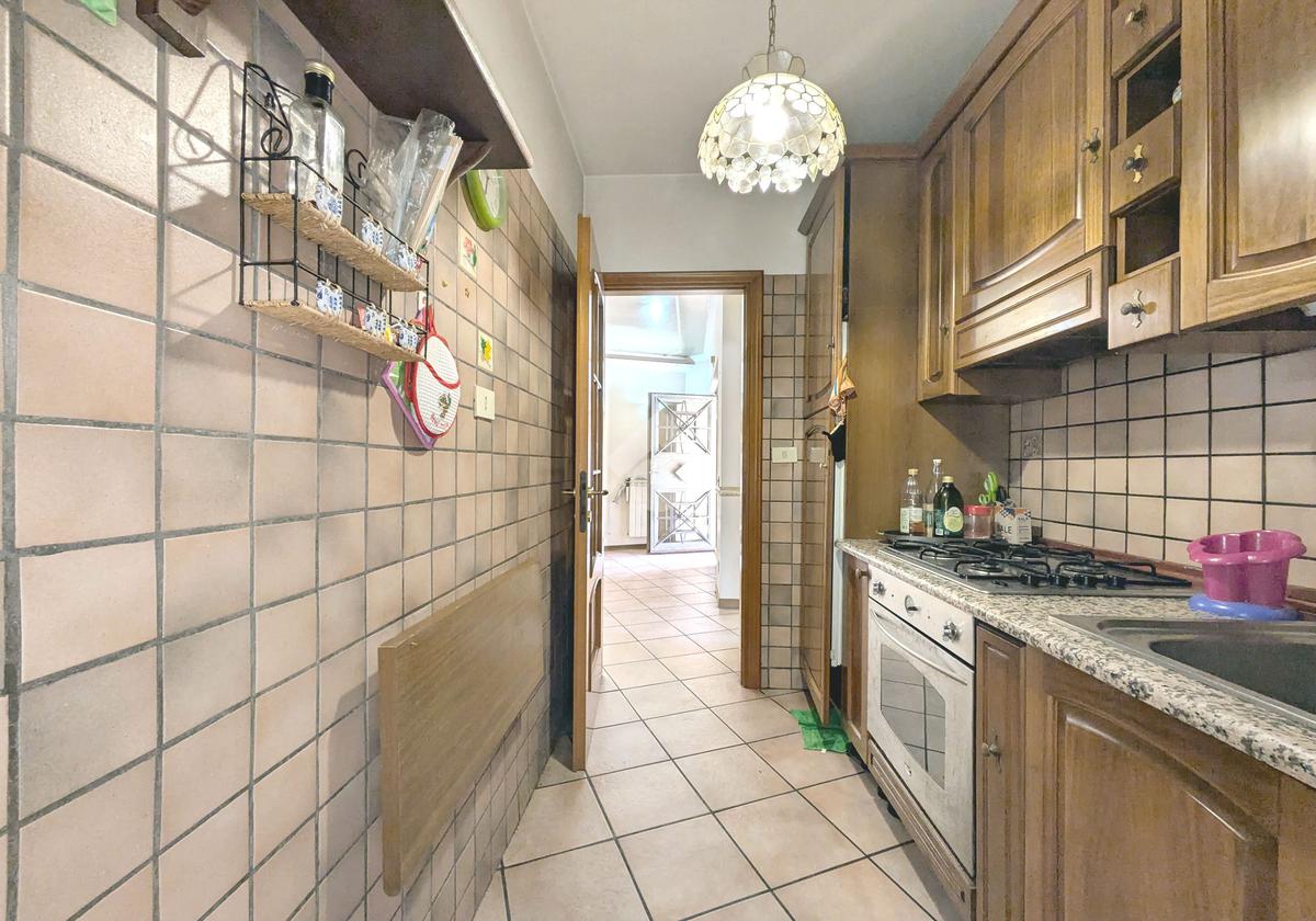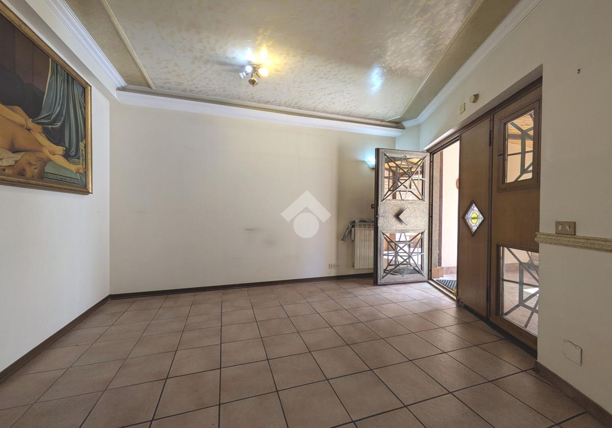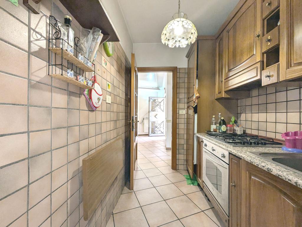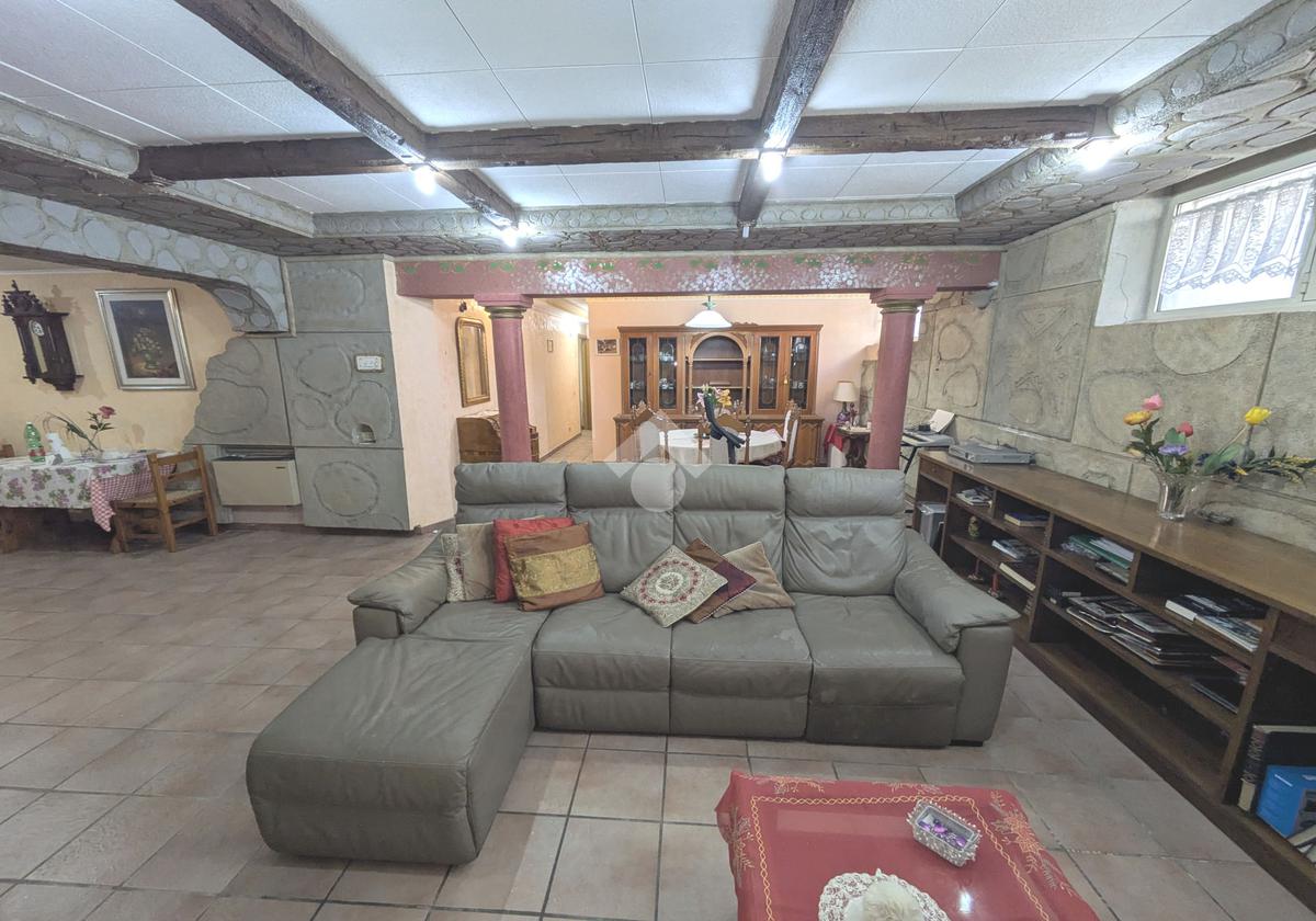 Si accede attraverso un cancello automatico che consente l'entrata sia pedonale che carrabile per più veicoli all'interno del giardino di proprietà. Questa area, prettamente pavimentata, è un ampio giardino di 180 mq, molto soleggiato perché gode di un ottima esposizione (sud- est); da qui si entra all'interno dell'appartamento dove ci accoglie un primo salottino, una camera da letto, un bagno ed un cucinotto. Attraverso una scala in muratura, si accede al piano seminterrato di 80, la sala hobby: qui un comodo disimpegno ci introduce ad un grande soggiorno con angolo cottura, una camera da letto matrimoniale e un secondo bagno.