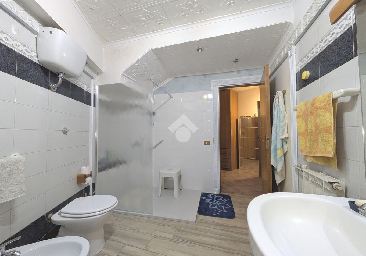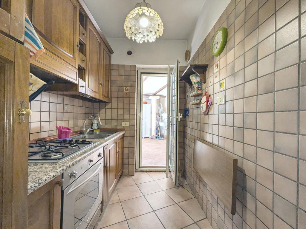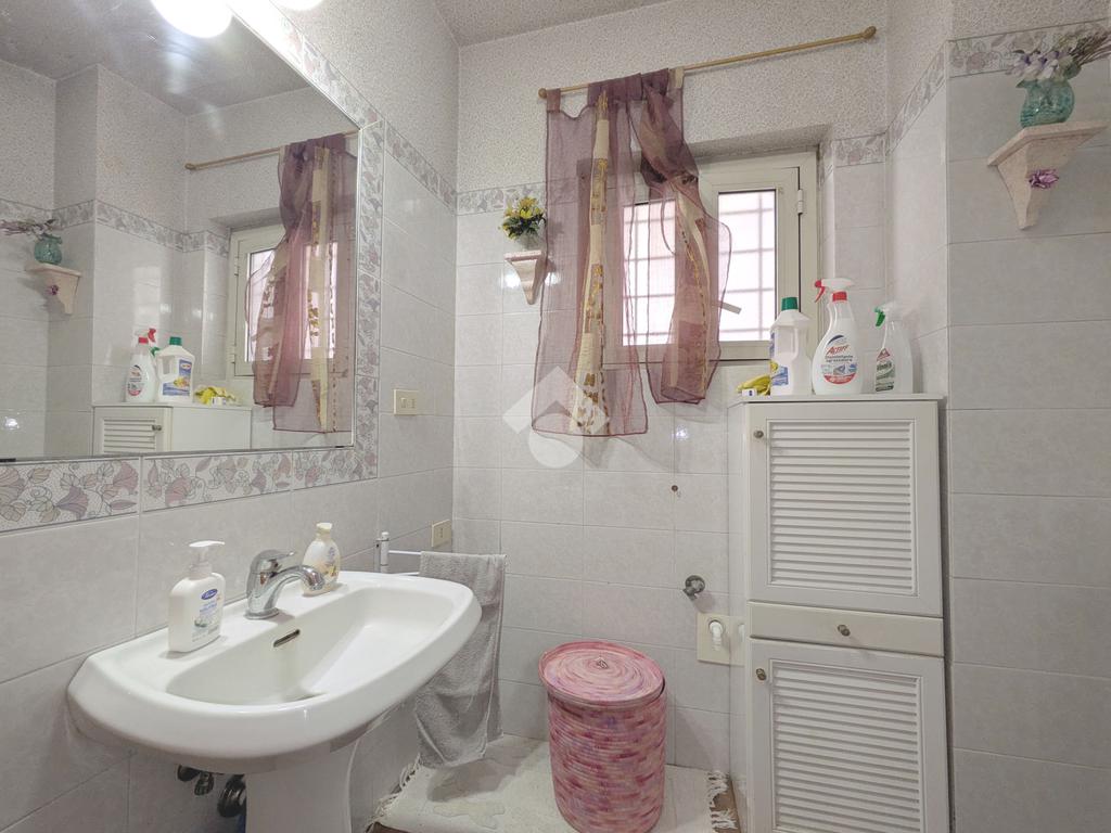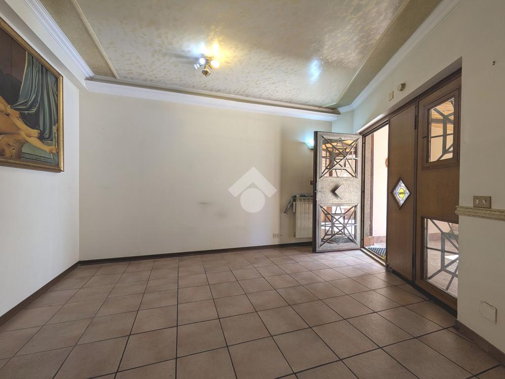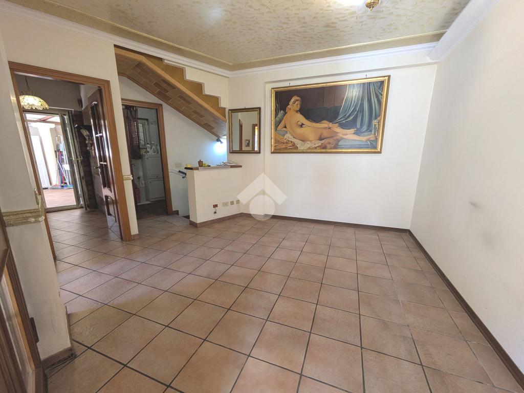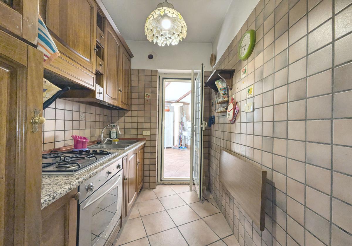 Si accede attraverso un cancello automatico che consente l'entrata sia pedonale che carrabile per più veicoli all'interno del giardino di proprietà. Questa area, prettamente pavimentata, è un ampio giardino di 180 mq, molto soleggiato perché gode di un ottima esposizione (sud- est); da qui si entra all'interno dell'appartamento dove ci accoglie un primo salottino, una camera da letto, un bagno ed un cucinotto. Attraverso una scala in muratura, si accede al piano seminterrato di 80, la sala hobby: qui un comodo disimpegno ci introduce ad un grande soggiorno con angolo cottura, una camera da letto matrimoniale e un secondo bagno.