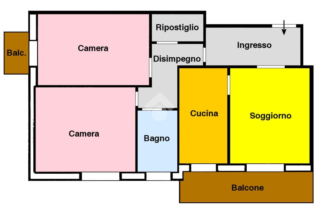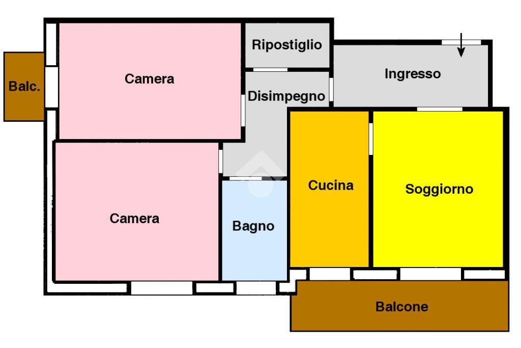L’immobile si distingue per la distribuzione funzionale degli spazi: un comodo ingresso introduce a un luminoso soggiorno, affiancato da una cucina abitabile. La zona notte comprende due spaziose camere matrimoniali, un bagno finestrato con cabina doccia, disimpegno e pratico ripostiglio. Completano la proprietà due balconi con doppia esposizione, ideali per godere di luce naturale durante tutta la giornata.
