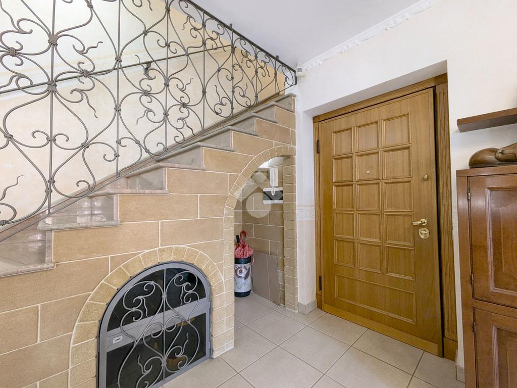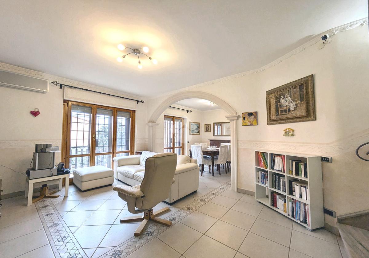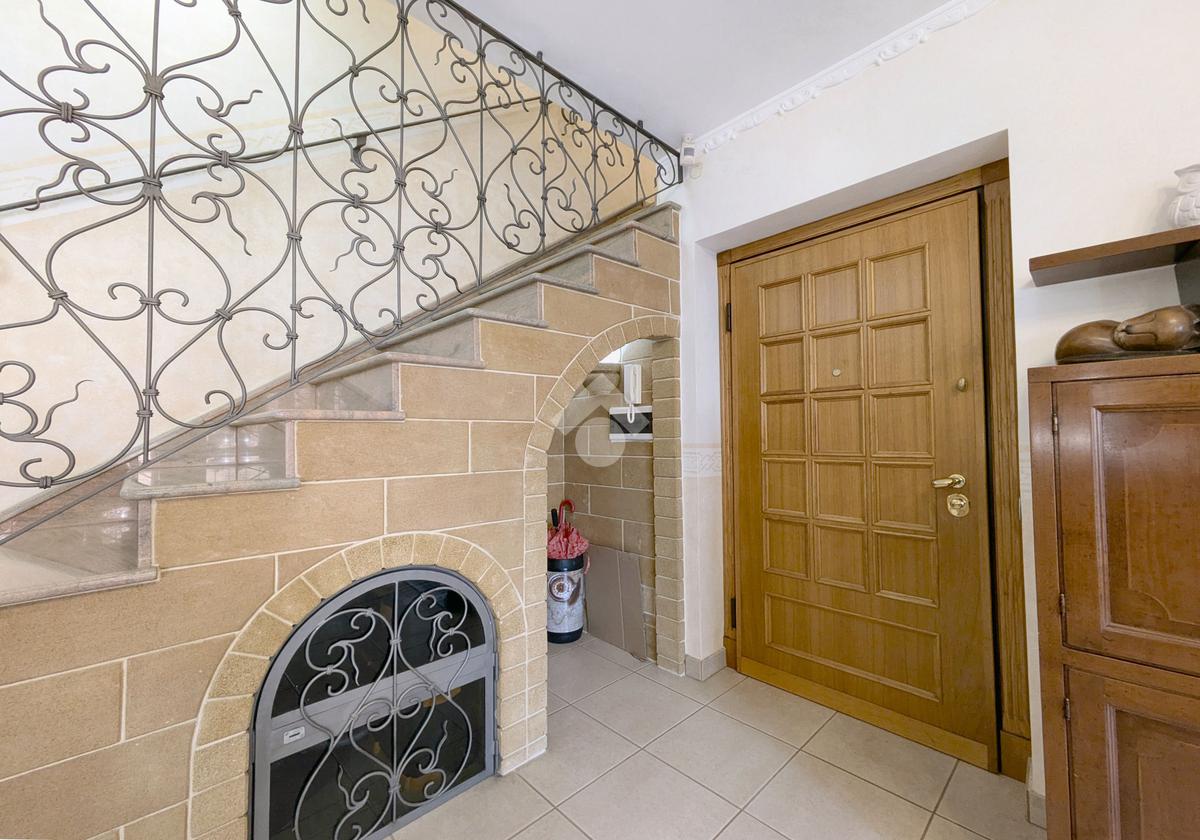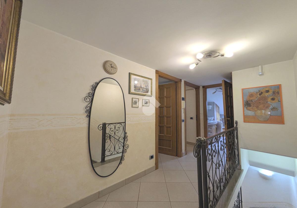 L’appartamento al suo interno si compone al piano primo da un ampio ingresso, un salone doppio dove troviamo la zona tv ed in prossimità poi della cucina, la zona pranzo. La cucina divisa dal salone attraverso una porta, ha una forma quadrata e regolare e dotata di una comoda cucina angolare. Sempre su questo piano troviamo anche un bagno di rappresentanza. Dal salone è possibile accedere a un comodo terrazzino.