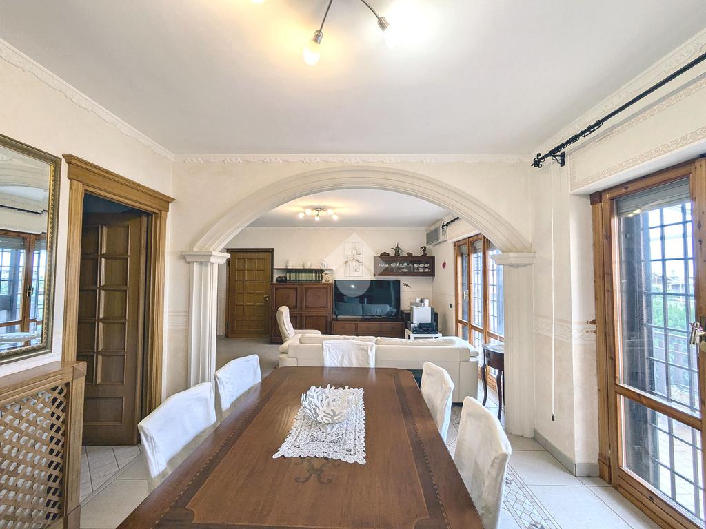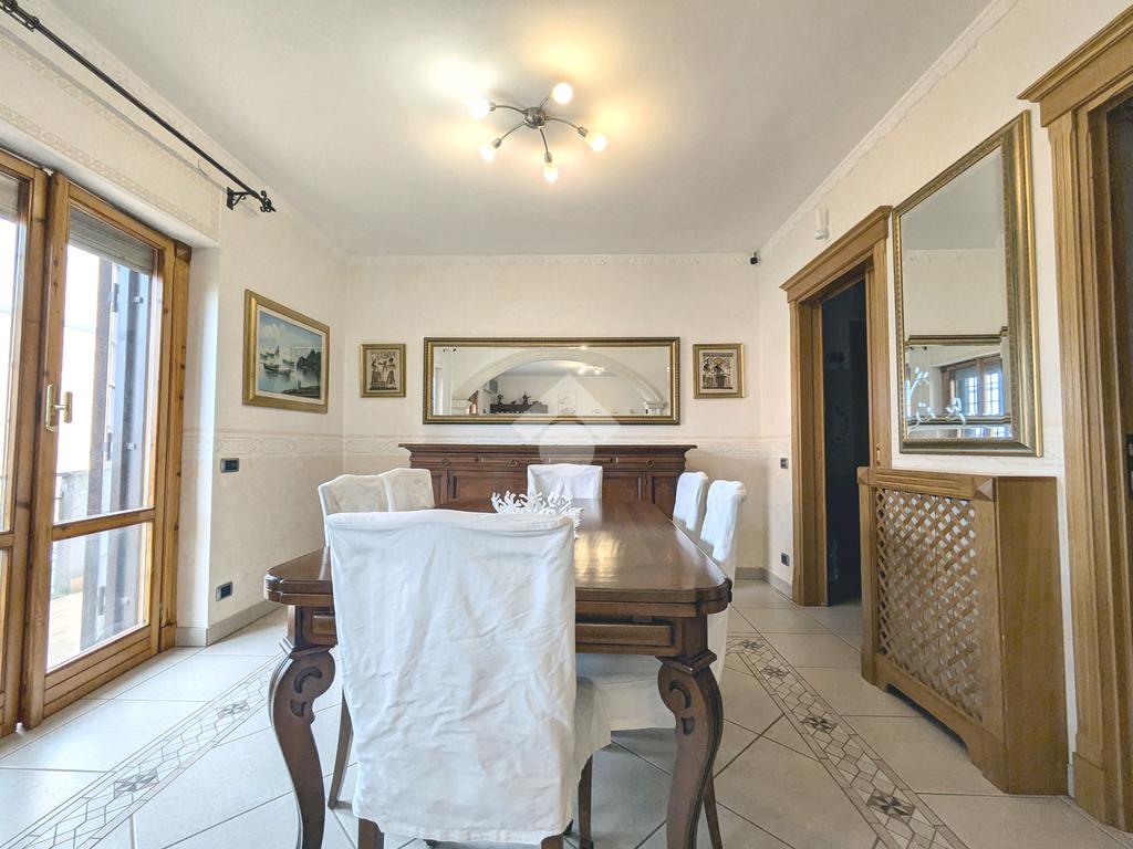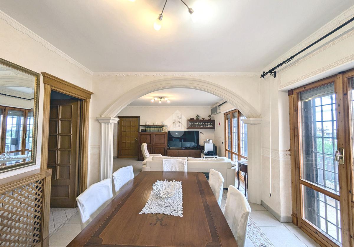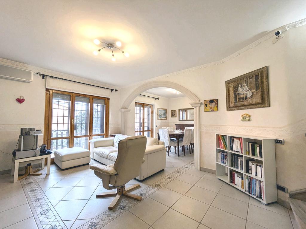 L’appartamento al suo interno si compone al piano primo da un ampio ingresso, un salone doppio dove troviamo la zona tv ed in prossimità poi della cucina, la zona pranzo. La cucina divisa dal salone attraverso una porta, ha una forma quadrata e regolare e dotata di una comoda cucina angolare. Sempre su questo piano troviamo anche un bagno di rappresentanza. Dal salone è possibile accedere a un comodo terrazzino.