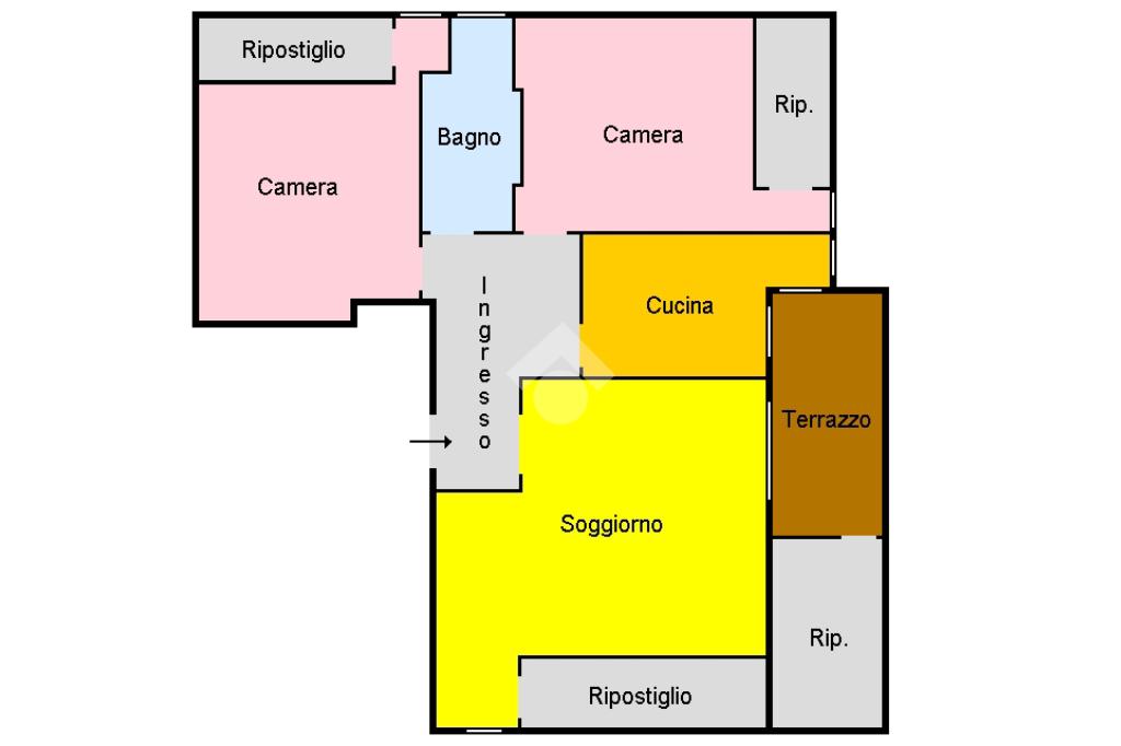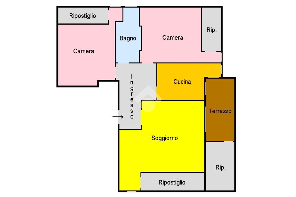 Ingresso accoglienteAmpio soggiorno con caminoCucina abitabileDue spaziose camere da lettoBagno finestrato con vascaDisimpegno funzionaleTre comodi ripostigli interni ed un altro sul terrazzo