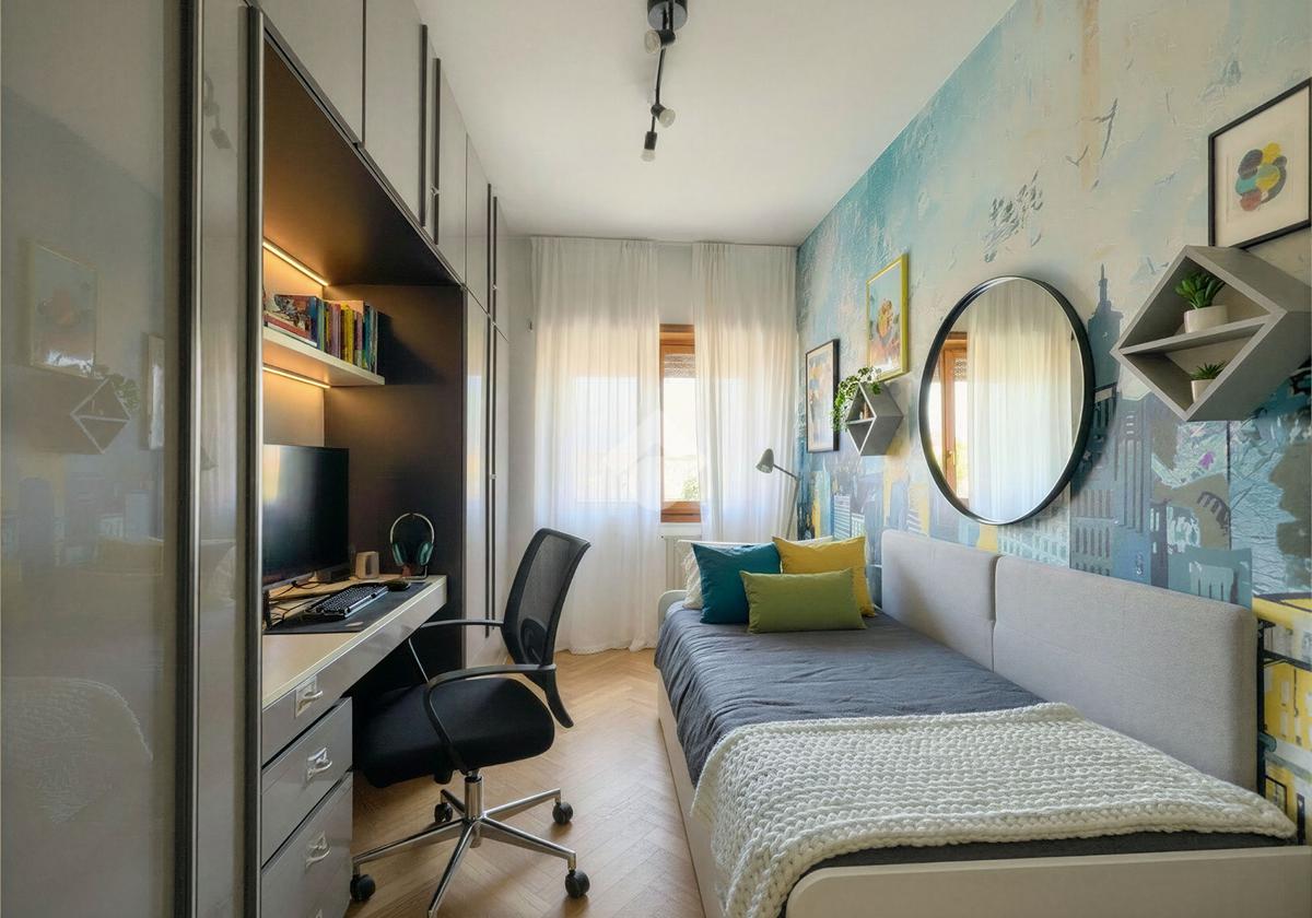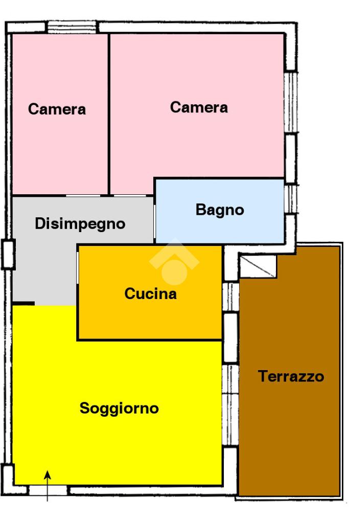 L’immobile si compone di un accogliente soggiorno, una cucina abitabile con la possibilità di essere trasformata in un moderno open-space unendola al soggiorno, una camera da letto matrimoniale, una seconda camera singola, un bagno finestrato con doccia e un disimpegno.